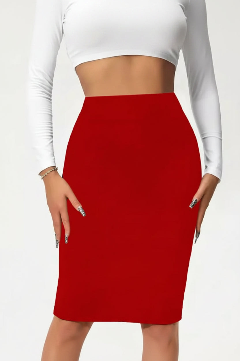 Elevate your confidence and command attention with this sharp pencil skirt, designed for the modern professional. The structured silhouette and refined finish create a sleek, powerful look for any formal setting.